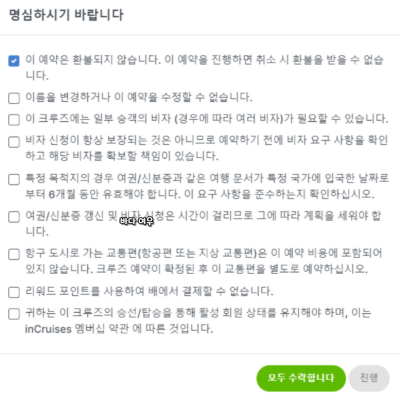 이렇게 해서 어머니와 함께할 첫 번째 크루즈 여행 예약을 완료했습니다! 아직 항공권과 크루즈 여객 터미널로 이동하는 차량 예약이 남아 있지만, 차근차근 준비할 예정입니다.
