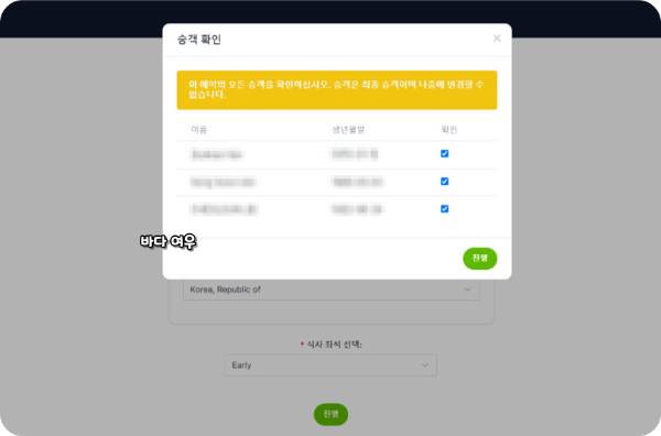 크루즈 여행을 하는 모든 인원에 대해서 작성해야 합니다.