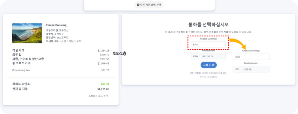 ※ 통화 선택 시 USD(달러) 선택