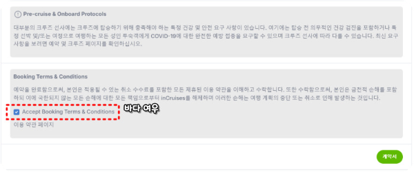 Accept Booking Terms & Conditons 체크 후 계약서를 선택합니다.