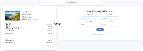 해외 결제가 가능한 카드를 선택하여 결제를 진행합니다.
